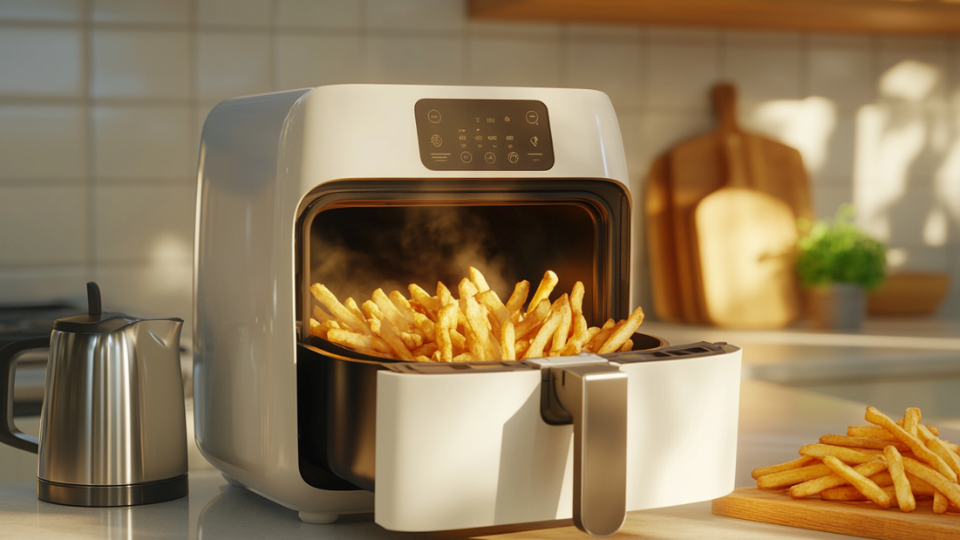 L'airfryer est un appareil de cuisson économe en énergie, utilisant moins d'électricité que le four traditionnel. Il chauffe rapidement et cuit les aliments plus